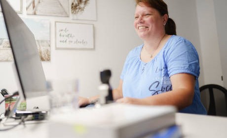 Im Praxisstandort in Oldenburg in der Grünen Straße arbeiten unsere Mitarbeiterinnen in der Anmeldung für die Sprechstunde und in der Anmeldung für die Therapie, in den beiden Laboren sowie im großen Therapiebereich. Zudem befindet sich hier das Sekretariat und die QM-Abteilung für beide Standorte. Zum Standort Oldenburg